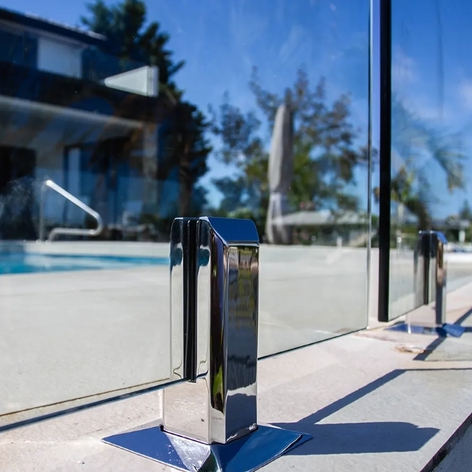 Τα κάγκελα γυαλιού με σφιγκτήρες, γνωστά και ως σύστημα κάγκελων γυαλιού χωρίς πλαίσιο, είναι ένας τύπος συστήματος κάγκελων που χρησιμοποιεί γυαλί ως το κύριο φράγμα με ελάχιστο πλαίσιο. Τα γυάλινα πάνελ στερεώνονται στο δάπεδο ή στην επιφάνεια με μικρούς μεταλλικούς συνδέσμους. Κάγκελα γυαλιού με σφιγκτήρες που συνδυάζουν τη μοντέρνα αισθητική με την εξαιρετική ανθεκτικότητα. Είτε αναβαθμίζετε ένα οικιακό μπαλκόνι, μια εμπορική σκάλα ή μια περίφραξη πισίνας, τα κάγκελα γυαλιού με σφιγκτήρες προσφέρουν μια εκλεπτυσμένη και ασφαλή λύση.